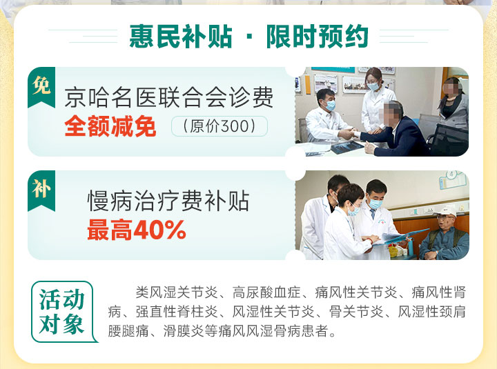 高尿酸血症、痛风/痛风石、痛风性肾病、类风湿关节炎、风湿性关节炎、强直性脊柱炎、骨关节炎、颈肩腰腿痛等痛风风湿骨病患者。