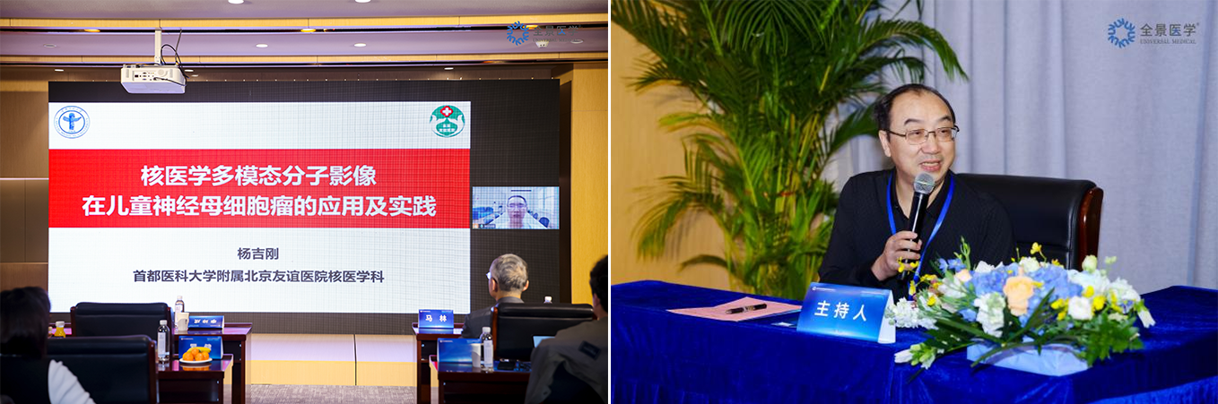 紧接着,北京医师协会核医学医师分会会长杨吉刚教授带来 “多模态分子影像在儿童神经母细胞瘤诊治中的应用进展” 主题分享。他聚焦儿童神经母细胞瘤这一儿童常见恶性肿瘤,结合临床实际案例,深入剖析多模态分子影像技术在疾病诊断、分期评估、治疗方案制定及疗效监测等全流程中的应用价值。
