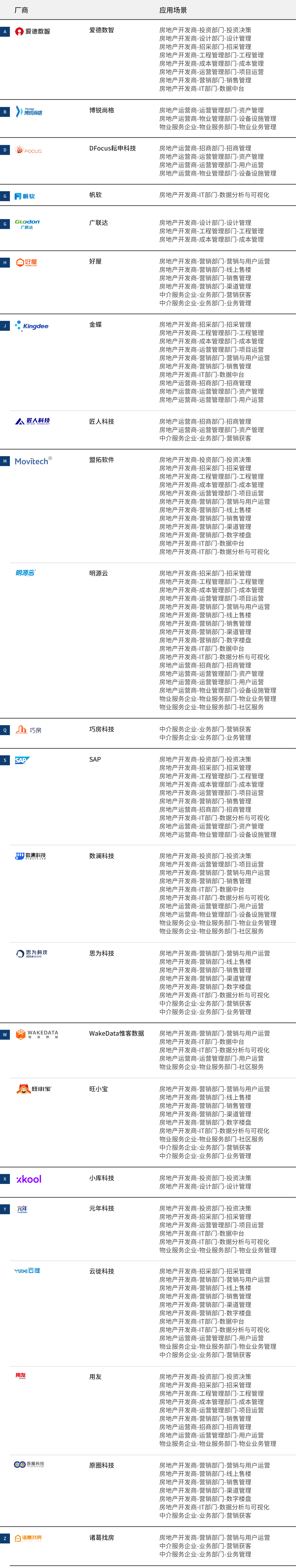 爱分析对21个房地产数字化场景的定义以及遴选出的代表厂商如下。